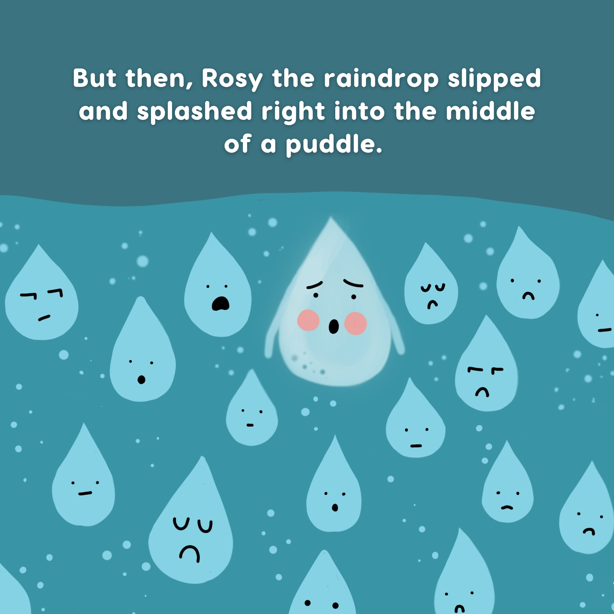 Rosy the Raindrop’s Adventure - The Water Cycle follows the journey of Rosy the Raindrop as she tries to return to her home in the clouds after unexpectedly falling to the ground. The story is designed to help young minds grasp the concept of the water cycle in a fun and engaging way, while also highlighting examples of teamwork and perseverance.